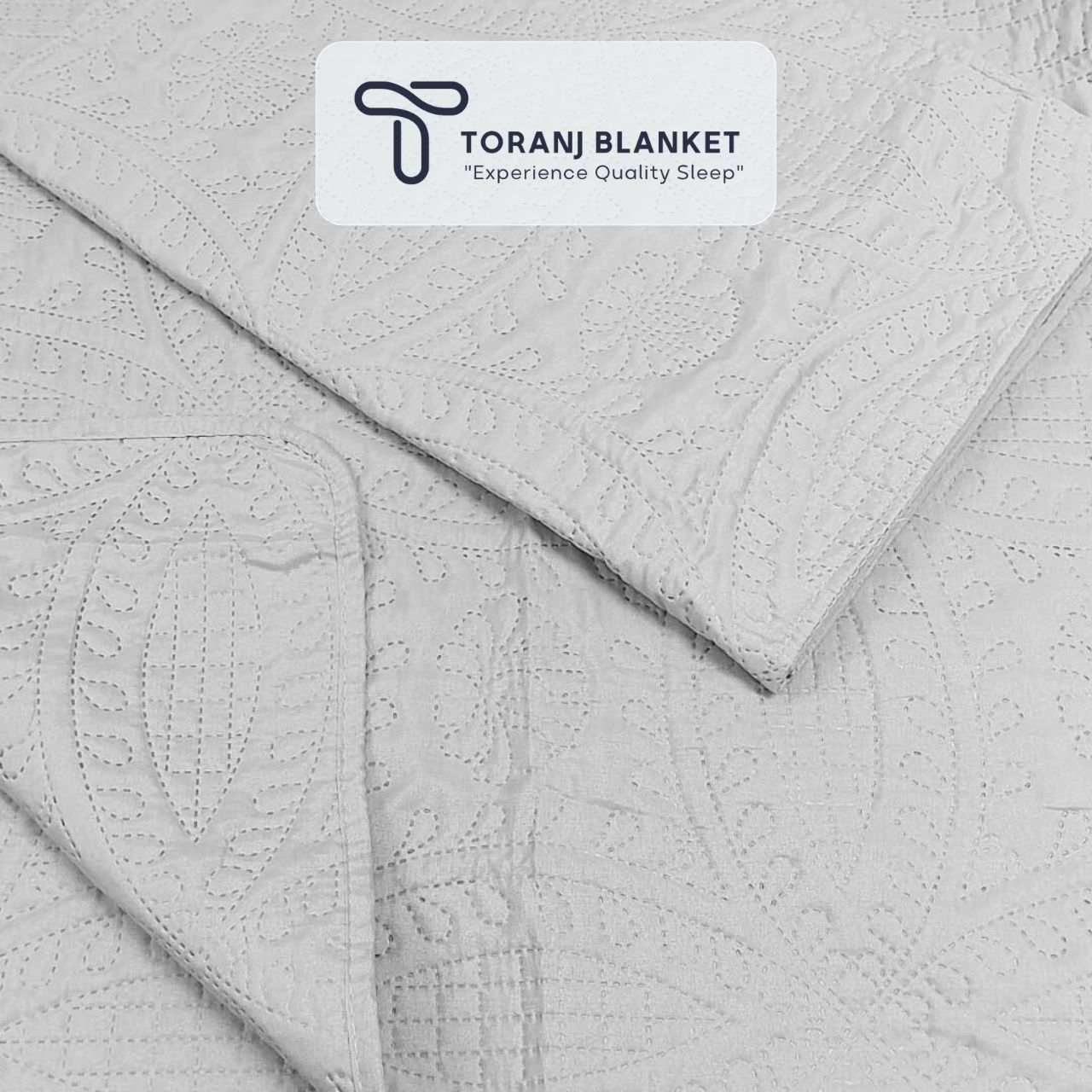 روتختی دونفره پنبه دوزی کتان تک رنگ طوسی – کد 05