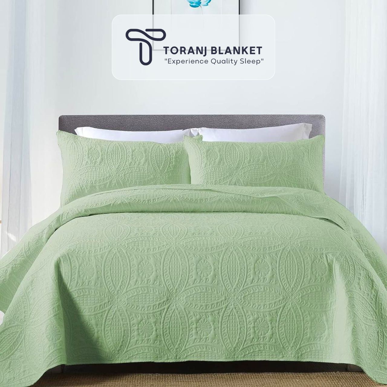 روتختی دونفره پنبه دوزی کتان تک رنگ سبز مغز پستهای – کد 27