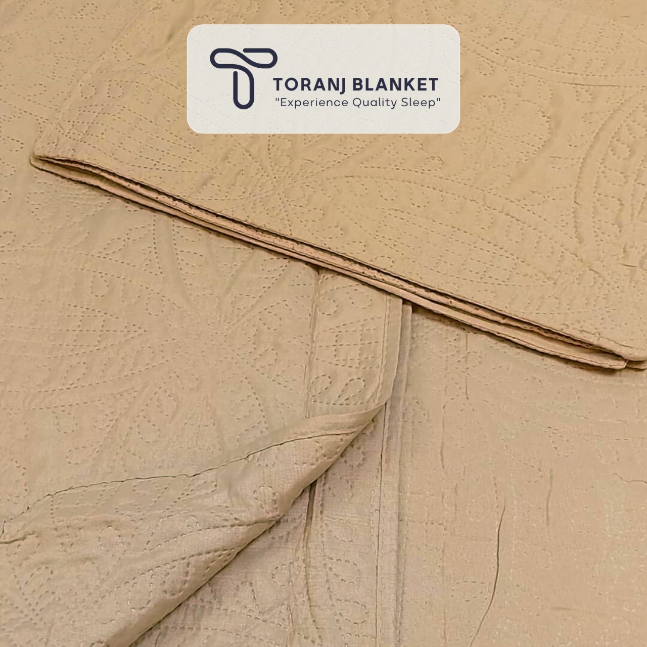 روتختی دونفره پنبه دوزی کتان تک رنگ نخودی – کد 44