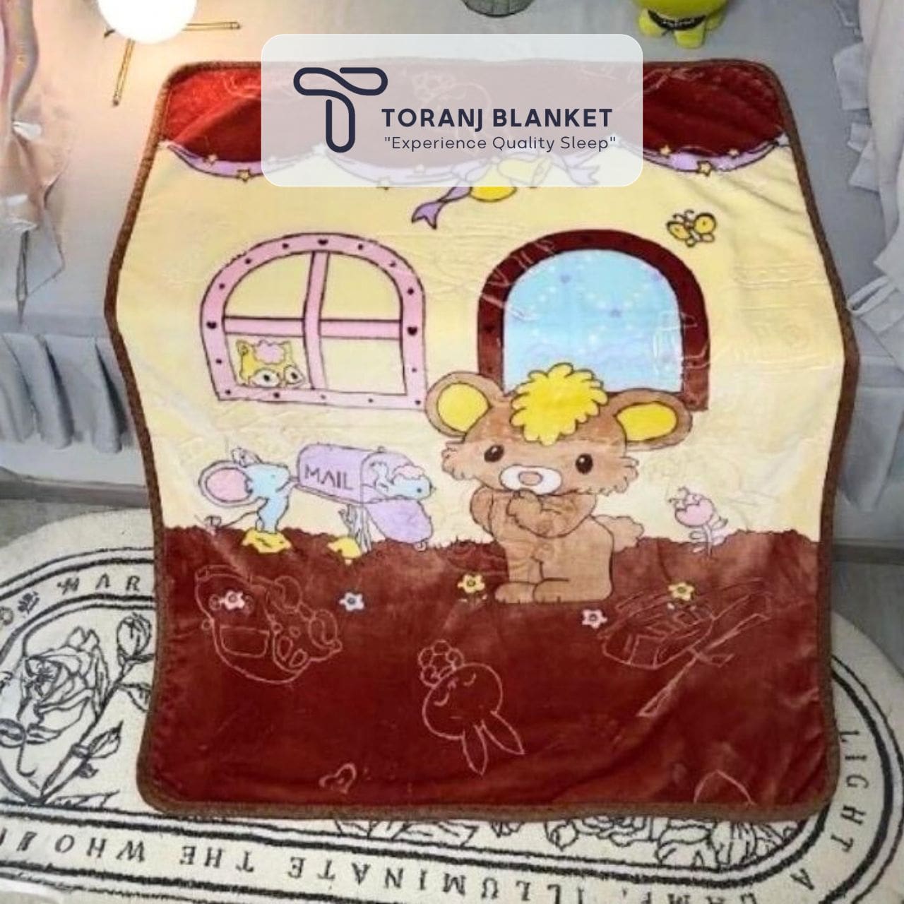 پتو کودک Sun High – کد 357 با طرح دوست‌داشتنی موش قهوه‌ای و بافتی بسیار نرم و لطیف، حس آرامش و گرما را برای کودک فراهم می‌کند. رنگ قهوه‌ای آن ست‌پذیری خوبی با وسایل چوبی دارد و برای استفاده روزمره کاملاً مناسب است. وزن سبک پتو باعث می‌شود کودک در زمان استراحت احساس راحتی بیشتری داشته باشد.